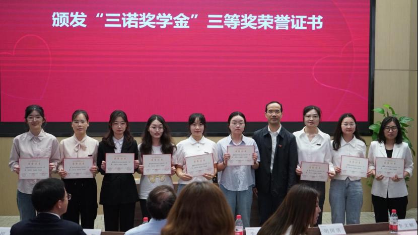 2023-2024学年三诺奖学金的决定”。李心一理事长、雷先阳书记、胡国清院长分别为2024年“三诺奖学金”一等奖、二等奖、三等奖获得者颁发了荣誉证书。韦杰桦、热汗姑丽·买买提土尔逊两位同学作为获奖学生代表,依次分享了自己研究生期间的科研成果和心得体会。刘宪军秘书长在致辞中对三诺生物传感股份有限公司、湖南省三诺糖尿病公益基金会、以及李少波校友、李心一女士长期以来对母校的关心和支持表示衷心感谢;李心一理事长对获奖学生表示祝贺,鼓励他们不忘初心,再接再厉,她以“融爱于生活,融爱于工作”为题发表了热情洋溢的讲话,结合公司“为爱而诺”的日本av女优,为同学们今后的职业发展提出了中肯建议,希望同学们在今后的发展中将爱融入生活、将爱融入工作。
