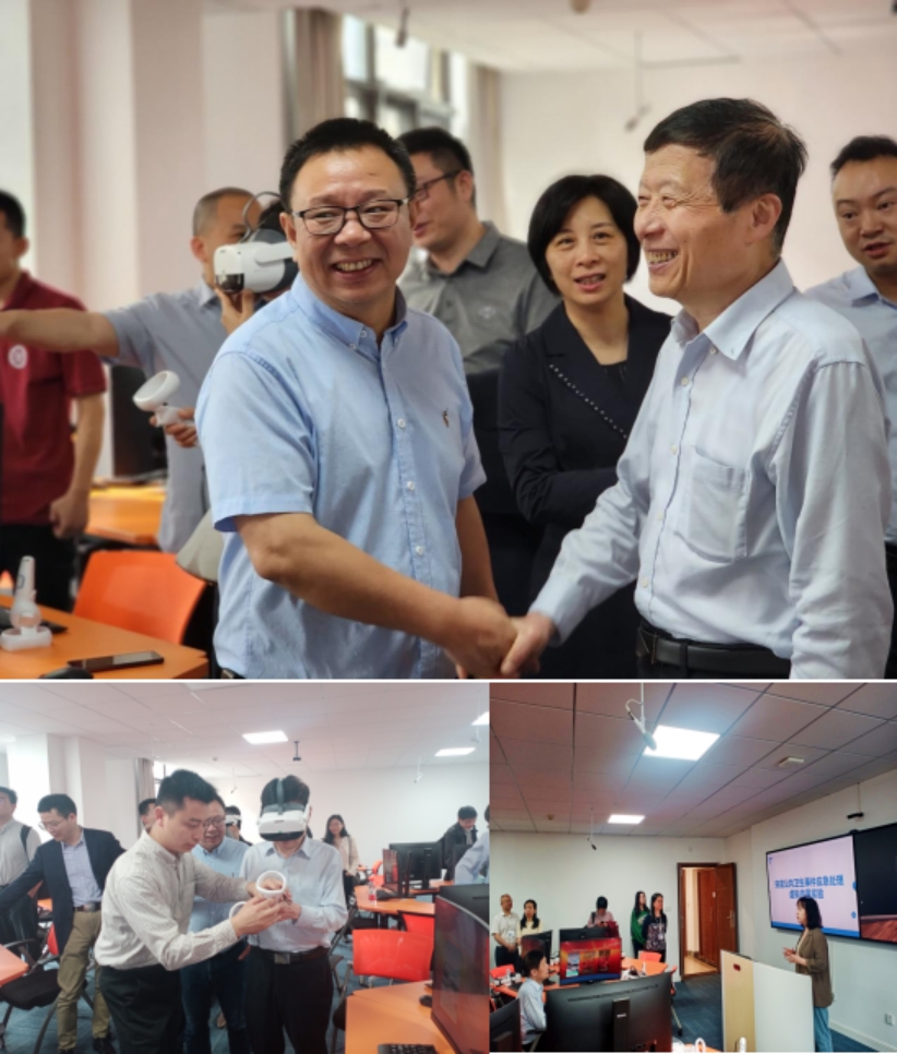 党委书记雷先阳、副院长秦家碧陪同参观了突发公共卫生事件应急处理虚拟仿真实验室。
