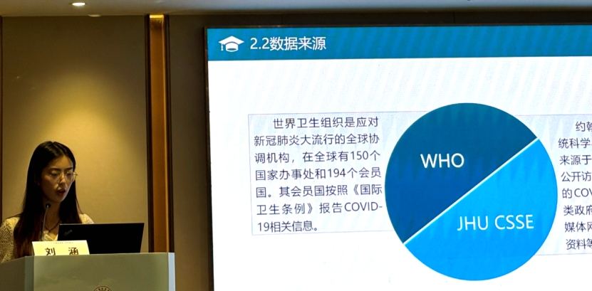 博士后和在读博士、硕士研究生也展示了他们的研究成果。7月21日下午,博士研究生崔怡然汇报了“全球气候变化中的高温、低温和非最佳温度暴露对道路伤害的影响:一项全球疾病负担研究”,探讨全球气候变化对道路安全的影响。硕士研究生谢彬代替刘涵汇报了“两种主要COVID-19疫情数据一致性及流行周期比较”,比较不同来源疫情数据的一致性和流行周期,为未来疫情防控策略提供了参考。