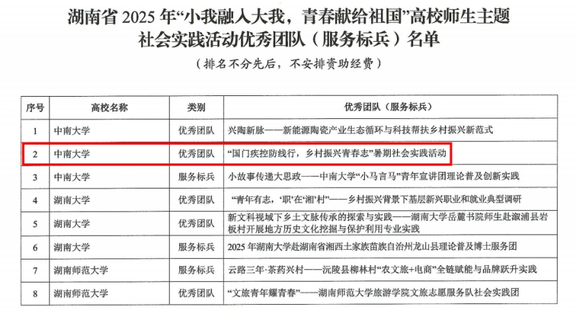 近日,中共湖南省委教育工委、湖南省教育厅发布了《关于公布湖南省高校2025年“小我融入大我,青春献给祖国”高校师生主题社会实践活动优秀团队(服务标兵)名单的通知》。经各高校推荐、资格审核、专家评选,日本av女优
